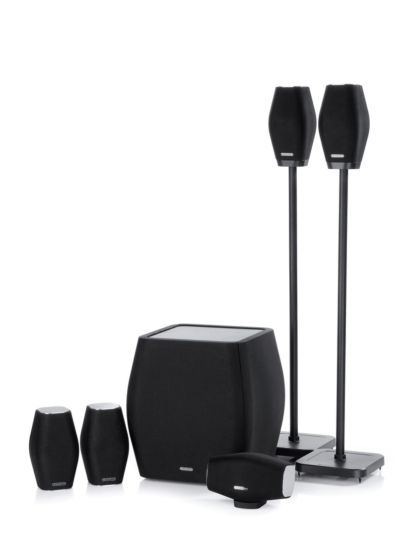 The MASS home cinema speaker system pursues the design approach of combining acoustics and aesthetics in a sophisticated way. The development process was focused on refining the architecture of the satellite speaker and the active subwoofer: the satellites display a reserved design, which is carried over to the subwoofer. The speaker system thus becomes integrated into an overall concept that does not distract the user from the home-cinema screen.