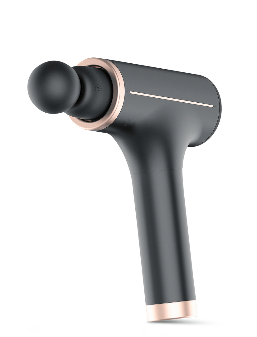 This functionally configured massage gun is pleasingly ergonomic. The clean lines of the housing are also visually appealing.