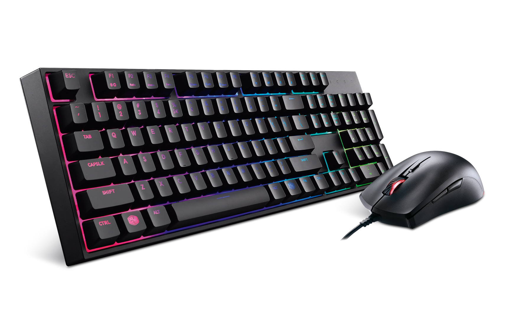 By means of illuminated RGB colour zones, the keyboard of the MasterKeys Lite L Combo can be set to any individual colour the user wishes. The special Mem-chanical keys are characterised by durability and ensure clearly felt tactile feedback when typing, whereby the keyboard feels almost like a mechanical device. Furthermore, the keyboard is splashproof. The mouse has two RGB light zones to choose from. It also includes two thumb buttons and a Teflon-coated underside, allowing for use on very different surfaces.