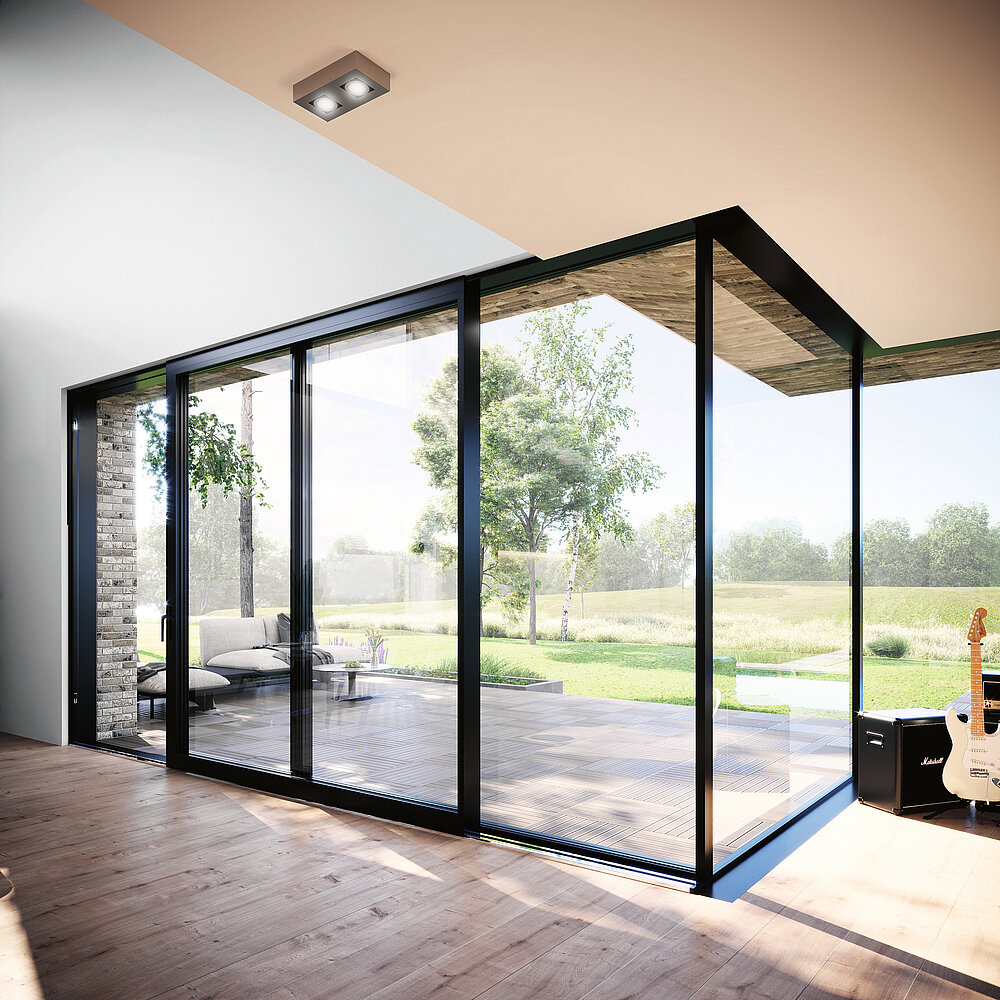 The design of the MasterPatio sliding door system succeeds in combining state-of-the-art sustainability requirements with excellent insulation performance and a clear design idiom.