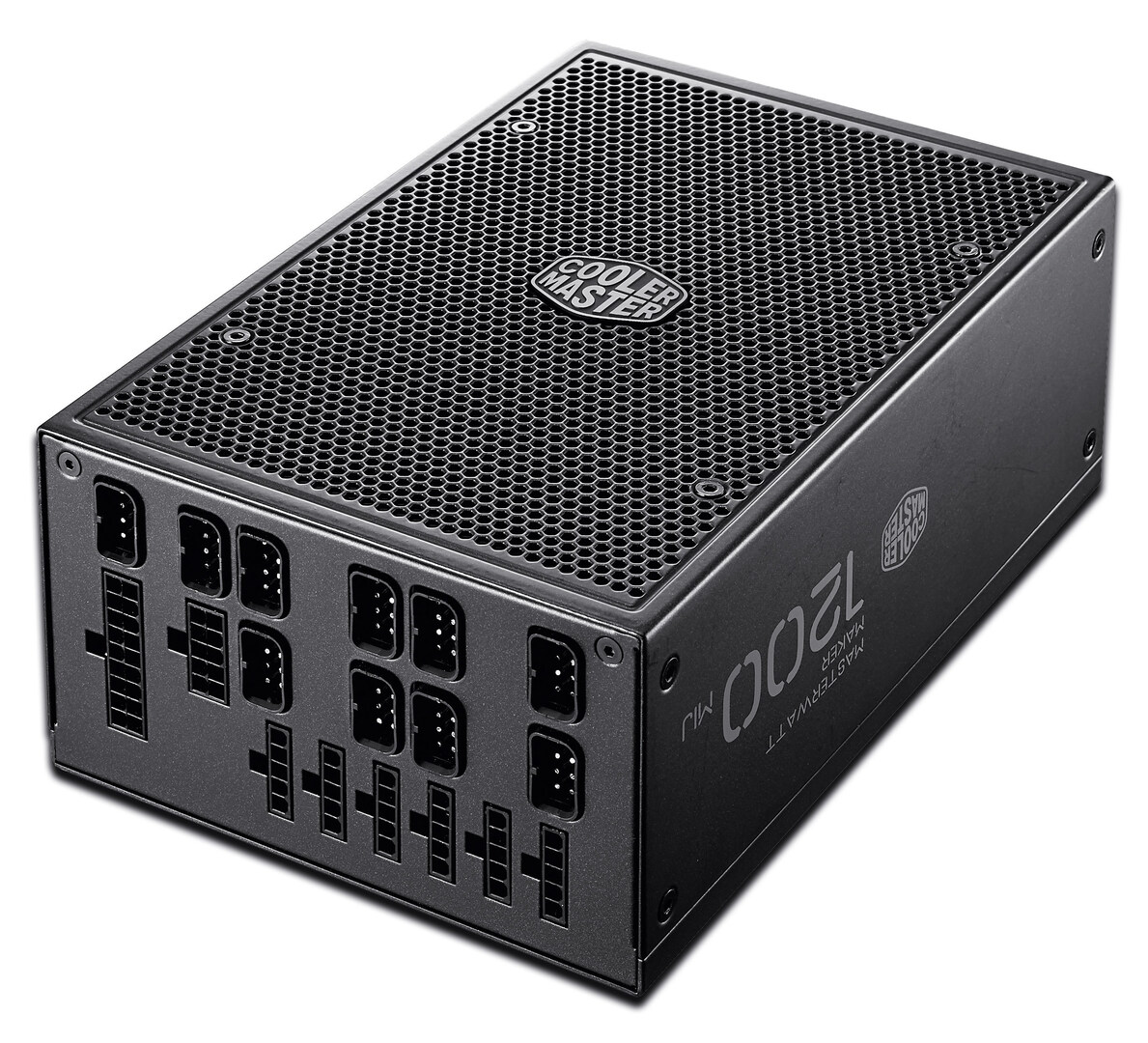 The MasterWatt Maker 1200 MIJ high-performance PC power supply unit possesses an 80-plus titanium certification, guaranteeing a typical efficiency of 94 per cent. This is achieved by technically sophisticated cabling and a technology that supports the minimisation of heat loss. The integrated semi-passive fan is quiet, has low power consumption and, in conjunction with a honeycomb mesh grille, ensures optimal ventilation. Furthermore, it is activated only when 600 watts of power are reached. Premium engineered outer components give the product extended durability.