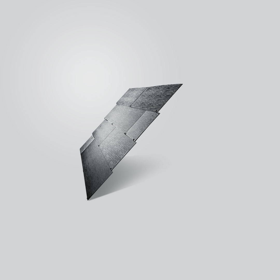 The design of MATCH Slate was inspired by the rustic, natural-stone roofs found in the Swiss Alps. The newly created material is a photovoltaic form of roofing that can generate electricity autonomously. To do so, solar modules are attached to the roof truss with the help of discreet hooks. They form a seamless transition to the roof shingle and thus create a homogeneous appearance of the roof, which is less reminiscent of the use of technical products but instead rather looks like a classic tile roofing.
