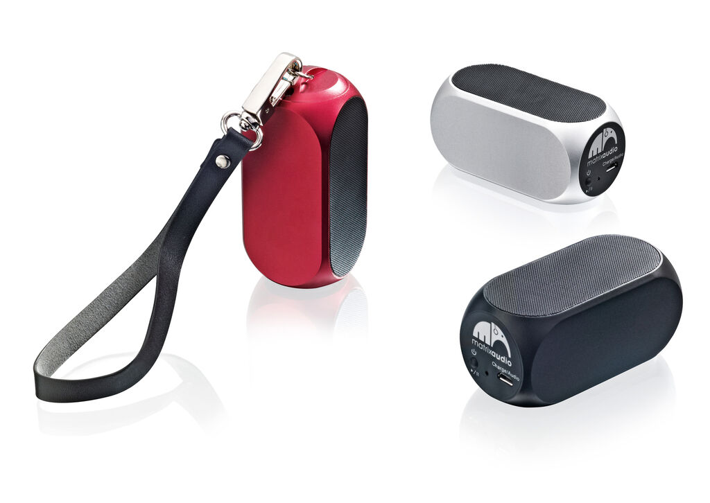 The high-gloss casing in modern colour shades and the practical hand strap turn this little speaker into a fashionable companion.