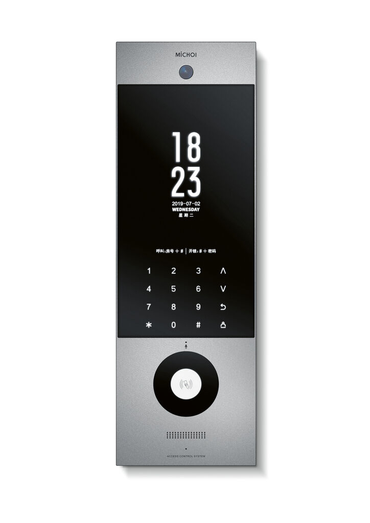 MC-516R15 is a smart building intercom system that adopts visual recognition and IM instant communication algorithms. This allows the device to collect biometric facial recognition data so that it can identify and provide access only to authorised people. The facial recognition function works even in poor light conditions and has a failure rate of less than one per cent. The use of a high-encryption Miface IC card further enhances the security provided by this access control system.