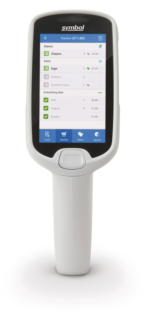 The MC18 enterprise mobile computer is a next generation personal shopper solution used within supermarkets, designed to present information on products and to simplify scanning and checkout procedures. A large display, simple touchscreen interface and one control key provide an intuitive, smartphone-like experience. Through a clever use of modularity and flexibility, the charger accommodates a wide range of room situations whilst also offering easy serviceability.
