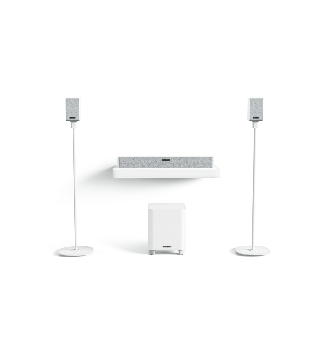 The Me 5.1 Wireless Home Cinema presents itself as an attractive overall solution for home cinema. Different colours and materials can be selected to ensure integration into the living area.