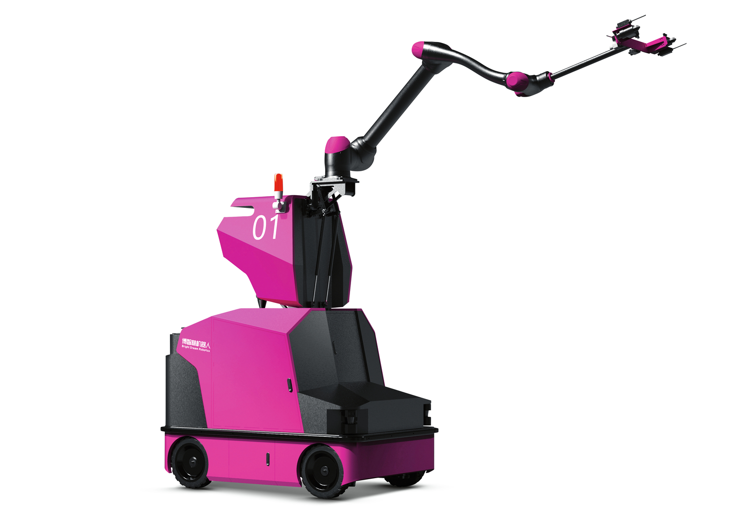 This automatic wall-spraying robot is specially designed for use in underground garages. Its housing protectively accommodates the electrical control and spraying system while, at the same, time providing a sense of robustness. The robot is equipped with detachable dual nozzles. The flexible joints of the robotic arm facilitate the automatic und efficient spraying of columns, walls and entire ceilings. Based on the built-in system, the robot is able to position itself, avoid obstacles and operate autonomously. IP67-level protection ensures the accurate and safe operation of the robot in harsh work environments.