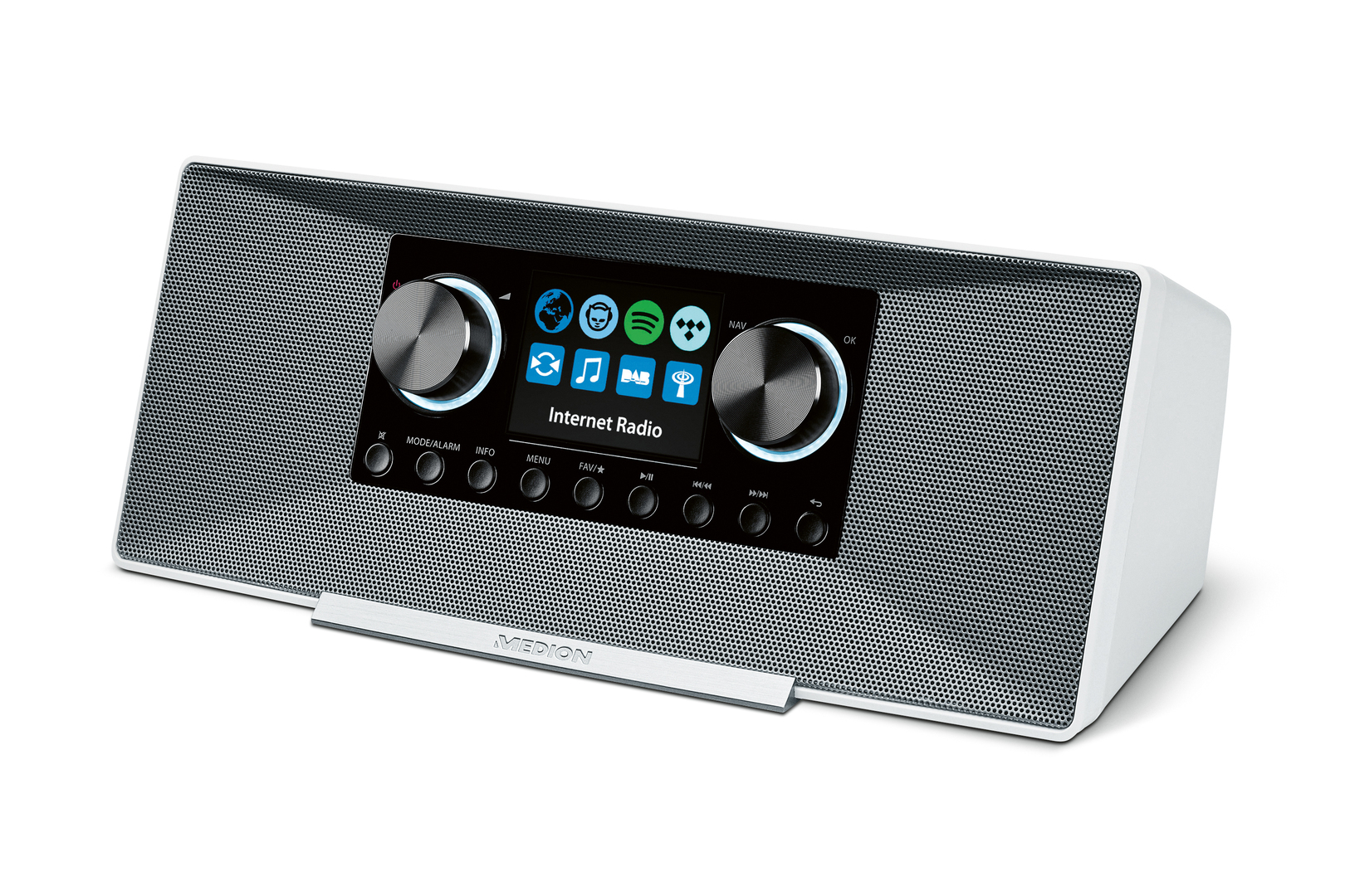 The MEDION MD 88289 internet radio is capable of receiving more than 25,000 internet radio channels from all over the world. Its front is characterised by the new Front Edge design that all of the brand’s wireless products feature. The distinctive MEDION ID is highlighted by a titanium-coloured bar with an engraved logo. The radio is controlled either via a smartphone app or directly on the 2.7" TFT display.