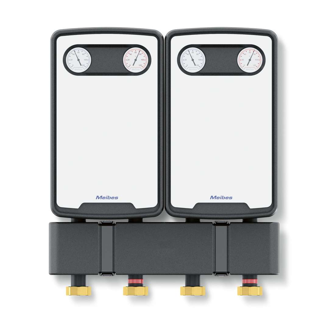 The pump group is designed to meet the growing demands placed on technical devices and systems in boiler rooms. The exterior of MeiFlow Top S is characterised by rounded edges as well as a colour and material combination that is rich in contrast. The housing features EPP insulation. The sophisticated technology is cleverly hidden behind the white, distinctively smooth and homogeneously designed front.