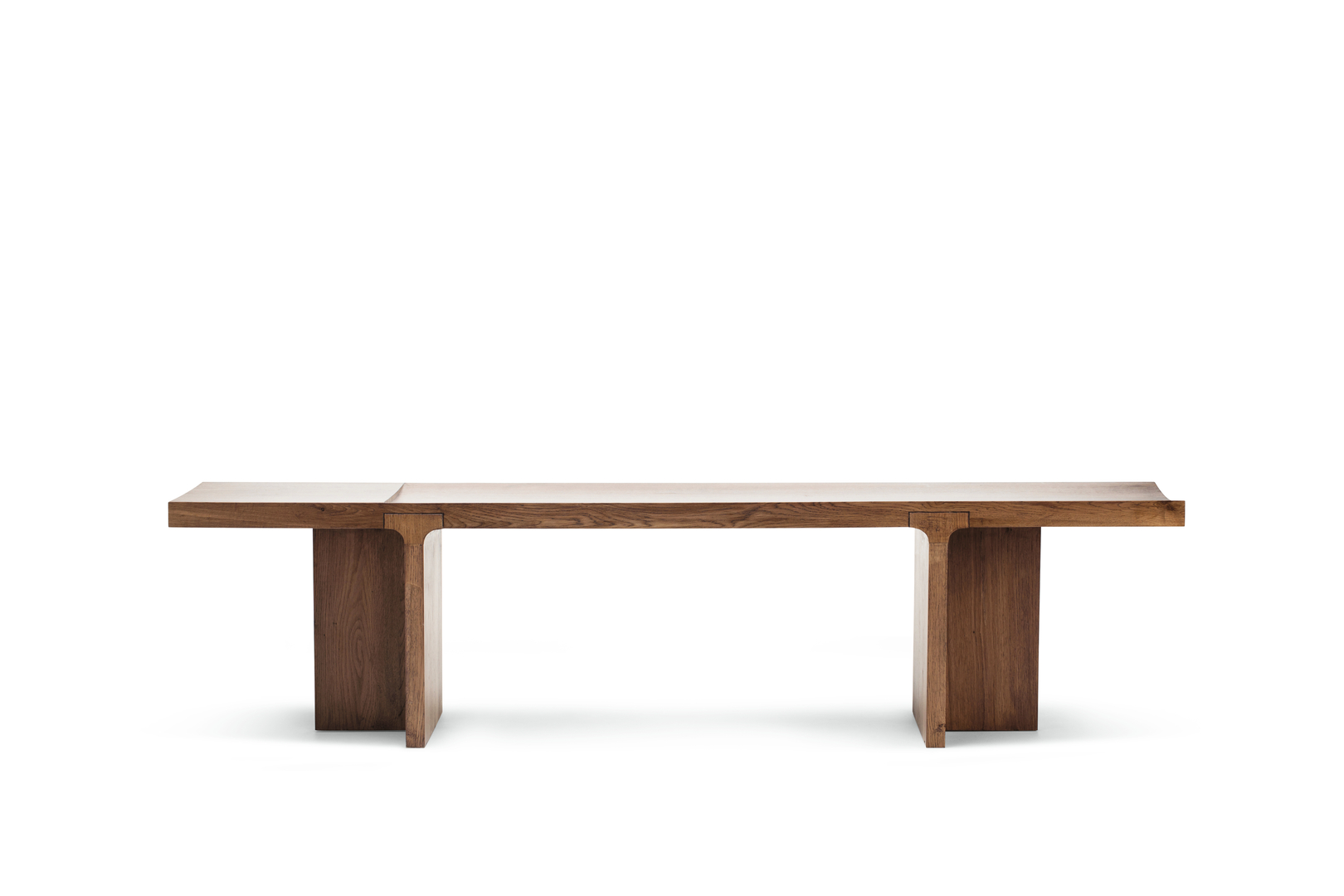 The use of wooden furniture leaves traces of the passage of time and life. Observing time going by creates an important emotional link between humans and the world. The design of this wooden bench aims to reinforce this connection. The bench is particularly well suited as a seat in front of a floor-to-ceiling window where it serves to create a bridge between the interior and exterior space. Its name, Mesa, is a term used to describe a mountain with a relatively flat top and steep sides. It is used in reference to the surroundings of the site where this bench is made.