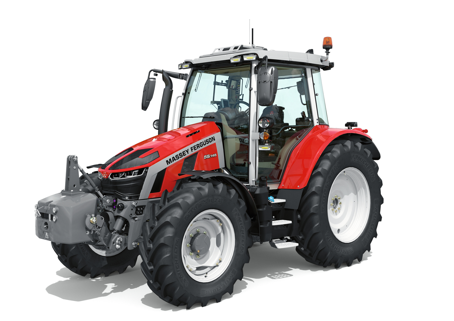 The MF 5S tractor series was redesigned to achieve performance and economy while optimising comfort and control, and retaining the distinctive sabre line livery. The tractors are agile and nimble, offering good visibility with high manoeuvrability on a tight turning radius of four metres. They are flexible in use thanks to a wide choice of additional equipment.
