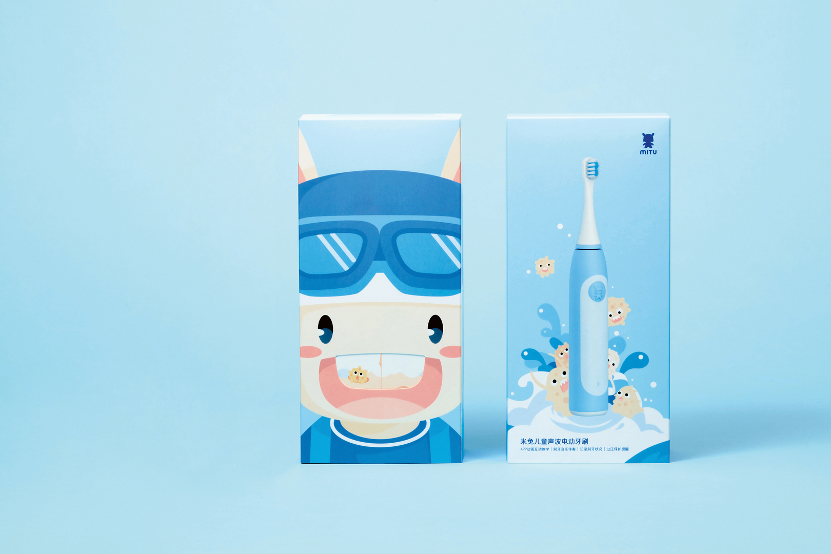This sonic toothbrush packaging uses cartoon elements to show children why they need to take care of their teeth. The design capitalises on interaction. As the child pulls the toothbrush out of the slipcase, different images are displayed in a cut-out on the back. The images can be read as a story, going from tooth decay to plaque and shiny teeth when the box has been fully opened. Handling the package thus increases the chances that young children get emotionally involved with the product and effectively strengthens brand loyalty.