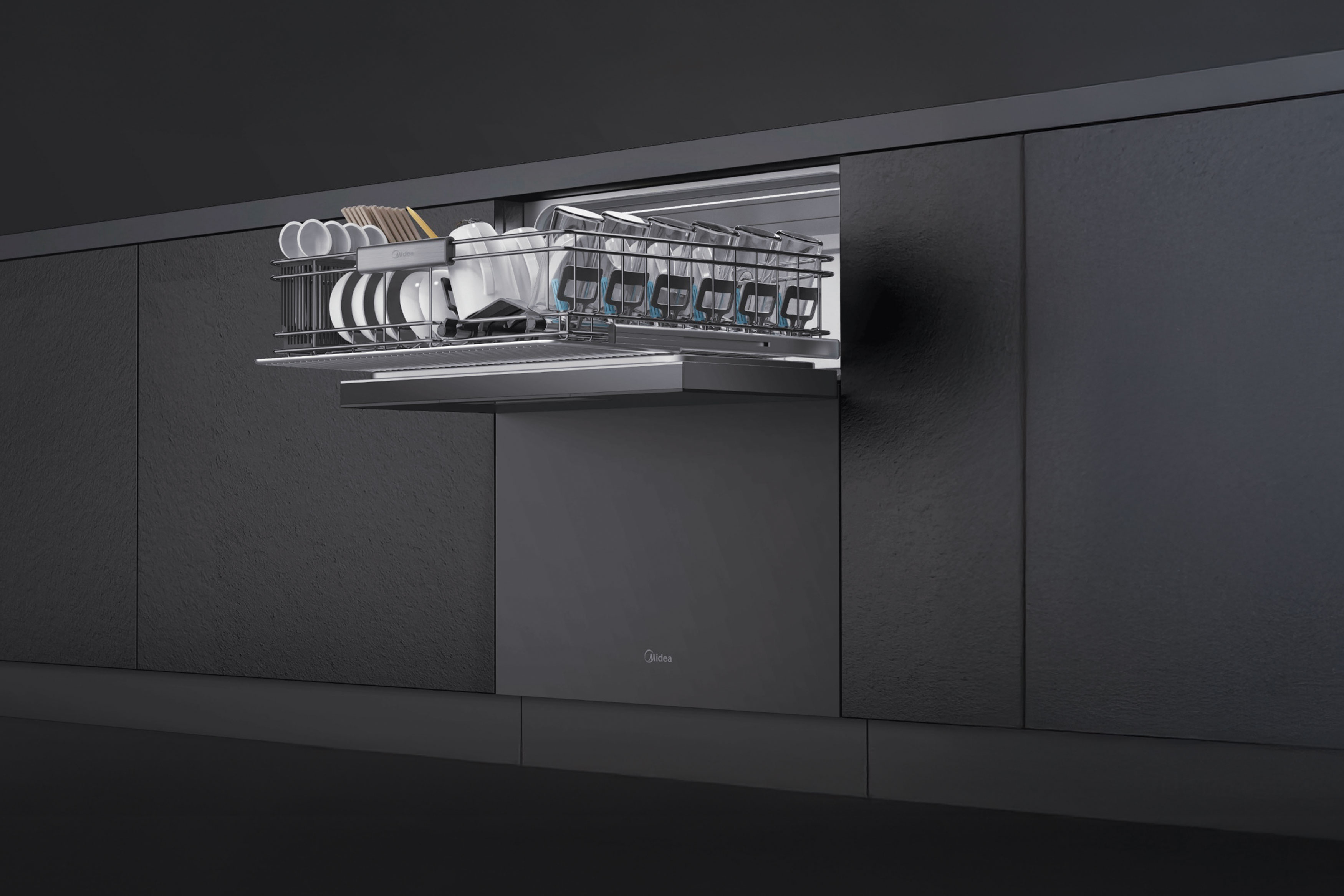 The Midea Split-Cabin Dishwasher's innovative design simplifies cleaning for any amount of kitchenware, ensuring an optimal dishwashing experience that also saves time and effort.