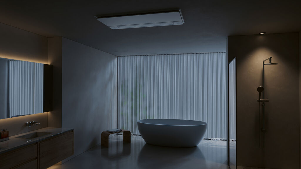 The Mijia Smart Bathroom Heater N1 is a ceiling-mounted bathroom fan heater with integrated lighting. A graphene-coated heating element allows the room to be heated quickly and energy-efficiently. The concealed air inlet creates a clean, structured appearance, further enhanced by gently rounded edges and precise lines. Heating, lighting as well as ventilation and sterilisation modes are controlled either via a wireless Bluetooth control unit with a touch surface and illuminated display or conveniently via an app.