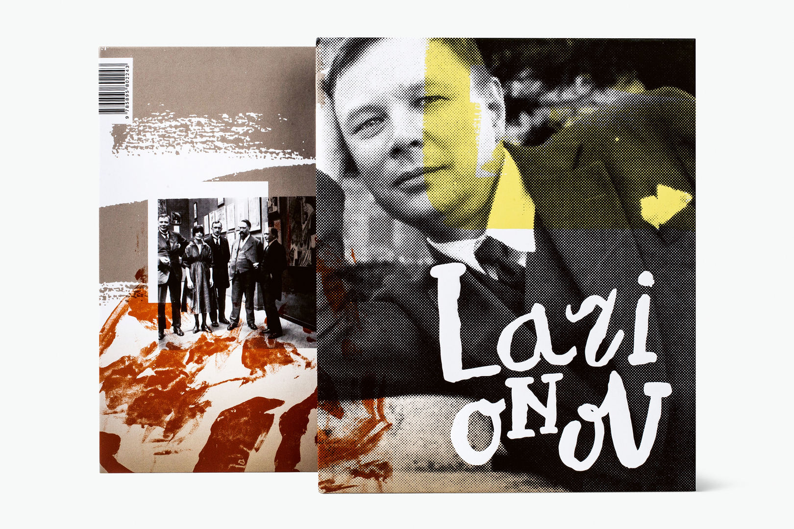 The work habits of Mikhail Larionov, an avant-garde Russian painter of the early 20th century, were the inspiration for this exhibition catalogue published in two languages. His experiments with different materials, techniques, colours and fonts are reflected in the editorial design. The open spine sewn with red thread, a folder-like cover, inside pages of different sizes and colours, all of this resembles an artist’s notebook. The composition on the inside gives an illusion of artistic chaos: superimposed transparent images, raster photographs, placement of illustrations and captions. The typography is reminiscent of typesetting posters and the Russian avant-garde.