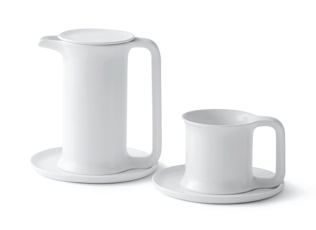Designed to make drinking milk a pleasure, the pot, cup and saucer of this set follow a harmonious language of form. The handle and the body of both seamlessly blend into one another and they seem to be made of one piece. Ergonomically well-shaped, their recessed grips are comfortably positioned so they lie pleasantly in the hand. The wide rim was carefully designed with regards to human lips. The saucer can be placed underneath the pot as well as the cup, or can be used to serve snacks, cakes or other treats.