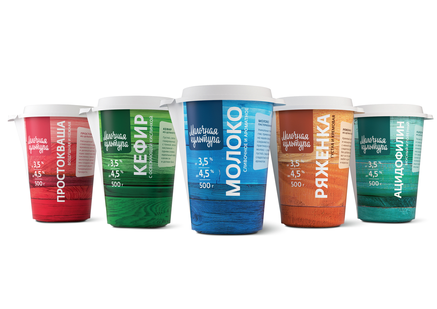 Part of the rebranding goal for “Milk culture” has been to expand the audience of the brand through visual renewal. The design of this packaging had to be appealing and attractive, conveying the notions of “brightness” and “energy”. The objective of associating the products with “naturalness” has been implemented by the use of a wooden-like texture paired with saturated, vivid colours. Conceived as multilayered metaphor, the design leaves ample freedom for interpretation. The pattern of the texture can thus resemble natural landscapes, rural houses or a coloured wooden surface.