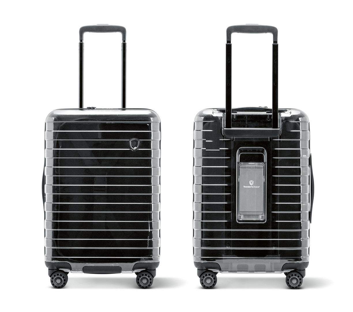 This trendy hand luggage effectively asserts both fashionable and functional claims. In the transparent trolley case, style-conscious travellers can show off their latest travel gear, while the built-in power bank allows on-the-go phone charging when travelling. A thin-walled yet sturdy hard shell of 100 per cent polycarbonate protects whatever items are packed in the carry-on case. Thanks to its high-quality Cyclone spherical wheel system, the spinner has good traction properties and is easy to move.