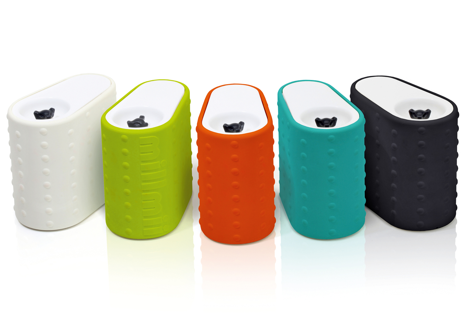 The design of the Millmii pepper mill is inspired by people with limited use of the fingers. It operates without turning the wrist or gripping with the fingers. Instead it is operated simply by rubbing it between the palms of the hands. When in use, the soft, studded rubber cover sticks to the hands and thus operates the mechanism. The pepper mill is available in many bright colours.