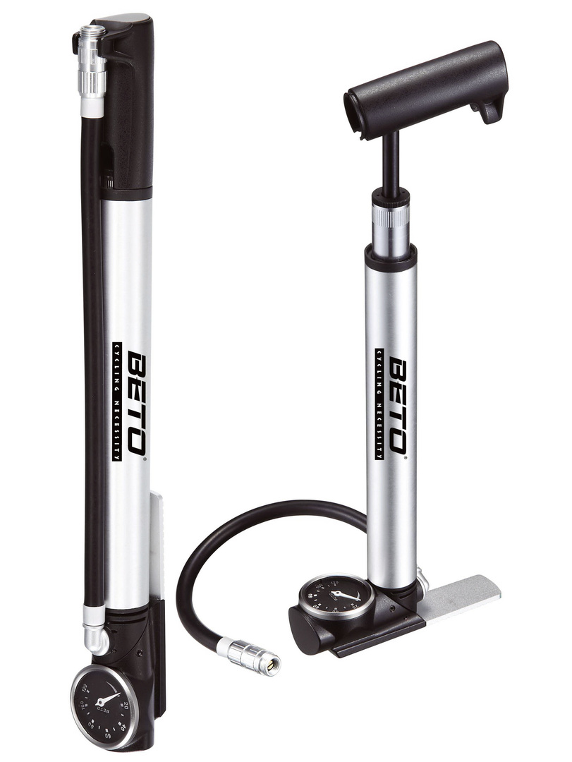 The design of this mini-floor pump focuses on user-friendliness. The gauge, which is often difficult to read, is attached to a rotatable metal footpad to facilitate a comfortable reading angle. Ergonomically, the pump lies comfortably in the hand and, thanks to its patented, pinch-free T-handle and 8” hose with flip head, is easy and convenient to use.