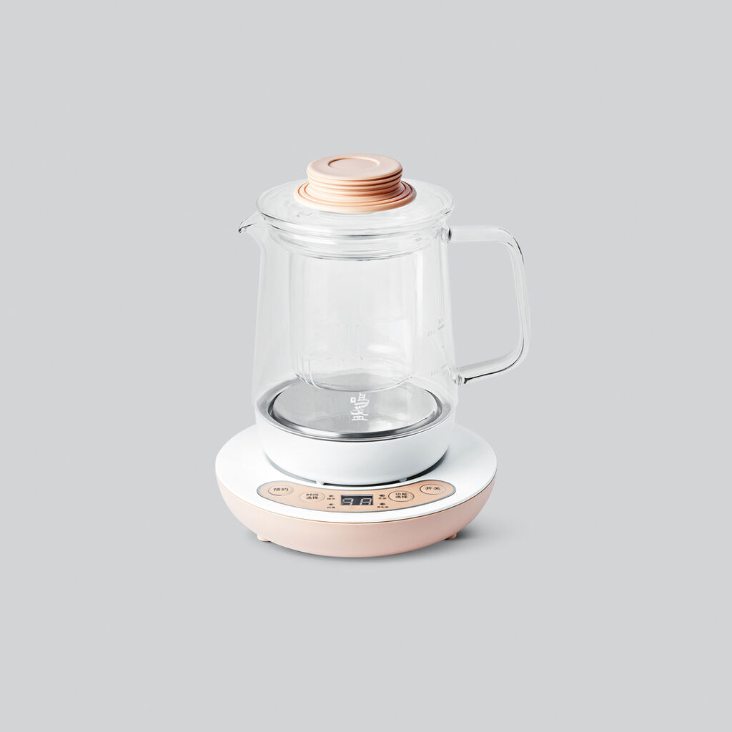 MINI tea maker is a small electric tea maker with a capacity of 500 ml, which offers various methods of preparation. It consists of a base, teapot, filter and cooking insert, and a lid, each of which can be used individually or in combination. The cooking insert also serves as a drinking vessel, and the lid can be used as a saucer for the cup. All elements are made of transparent glass, except for the base.