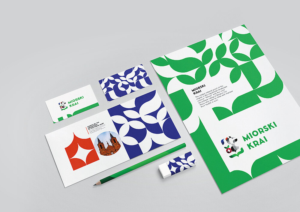 Miorsky Krai is a region of Belarus that is only little known among tourists. The task was to develop a brand design that connects all of the region’s tourist attractions. The main location is a large highland swamp area famous for its cranberries. As cranberries are the main product bought by tourists, they were chosen as the common visual element to represent the region. Thus, the design uses a cranberry leaf as a modular graphic element that serves as basis for the region’s main logo as well as numerous additional logos for individual tourist locations within it. In combination with identifying colours, this creates eye-catching branding.