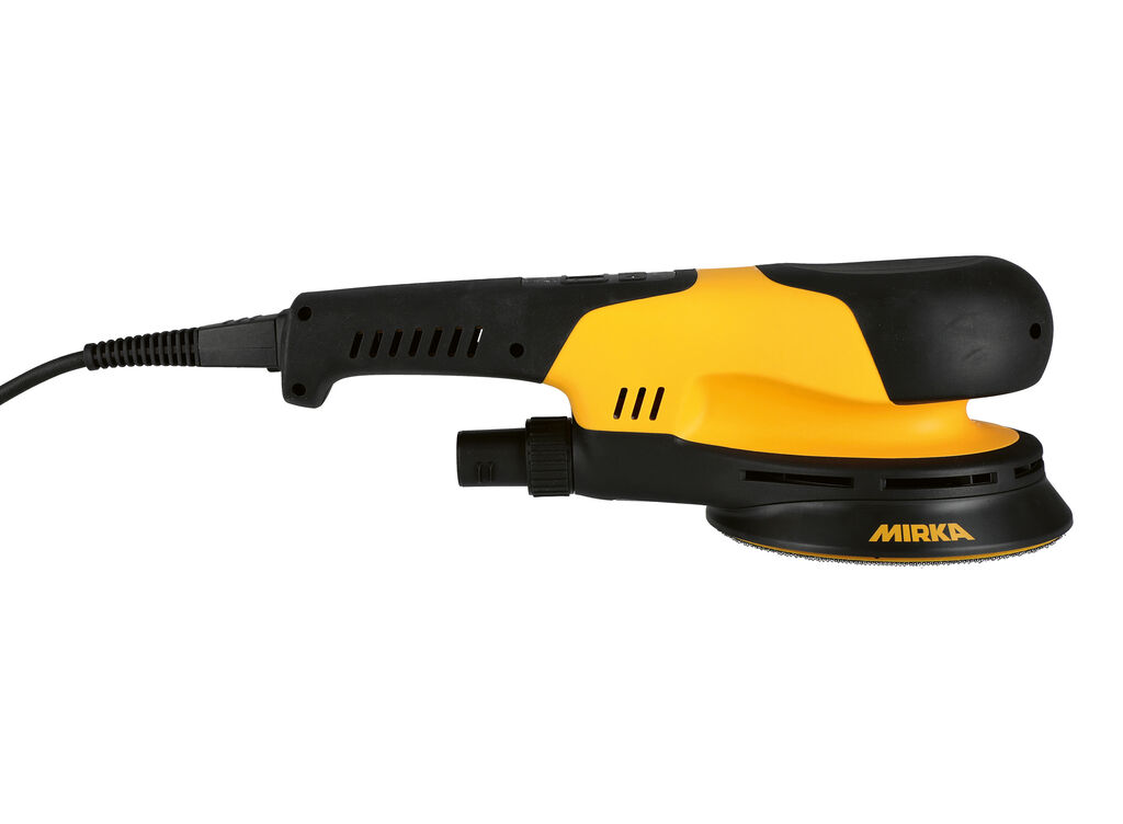 Mirka DEROS RS 600 is a rotary sander for coarse sanding applications that specifically addresses problems such as high vibration and noise, poor surface control as well as dust generation. The main innovation is the gearless direct drive, which enables extremely low vibration and noise levels. In combination with efficient dust extraction, this results in an ergonomic, precise and healthy sanding experience. The flat, wide machine front improves guidance control.