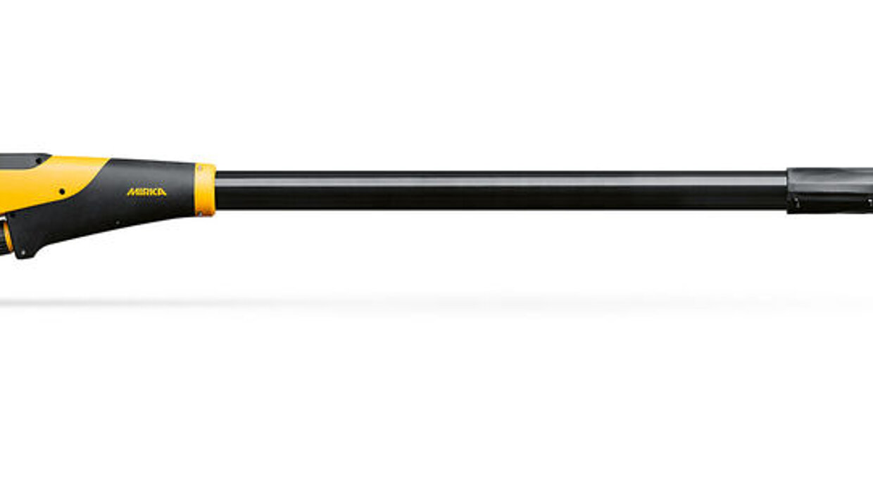 The colour contrast of the Mirka AOS-B sander effectively defies the minimalist design, while simultaneously highlighting its comfortable proportions.