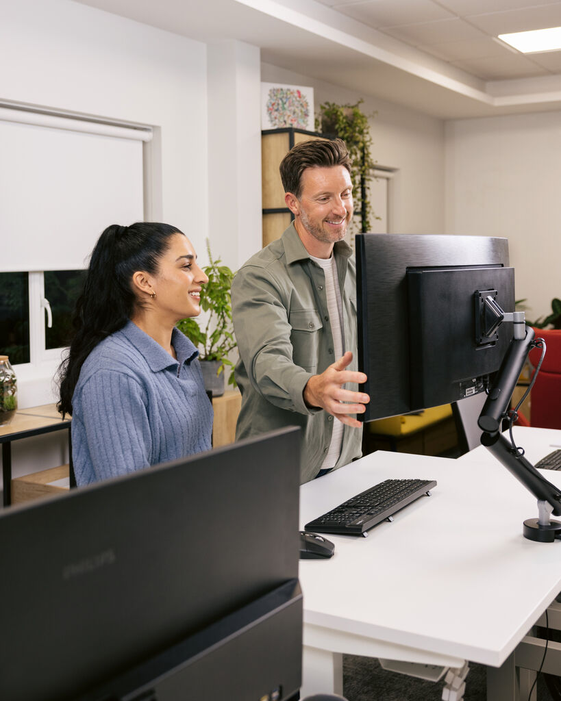 The Miro monitor arm cleverly organises all cables and impresses with its round, futuristic design and sustainable approach.
