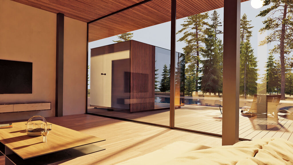 The Mirror Glass Sauna XL combines wood with large, bronze-coloured, mirrored-glass surfaces. The low thermal conductivity of the double thermal glazing, along with the wood fibre insulation, has an energy-saving effect. The interior walls and benches are made of thermo-ash wood to convey a sense of cosiness, while the glass surfaces provide for openness. The cabin can be used as a Finnish, bio- or infrared sauna. A separate changing and relaxation room is included. The sauna can be operated via Wi-Fi, app or Alexa, enabling users to heat up the sauna ahead of time when returning home. The jury described the Mirror Glass Sauna XL as “a successful aesthetic fusion of glass and wood, in combination with a luxurious feeling of space”.