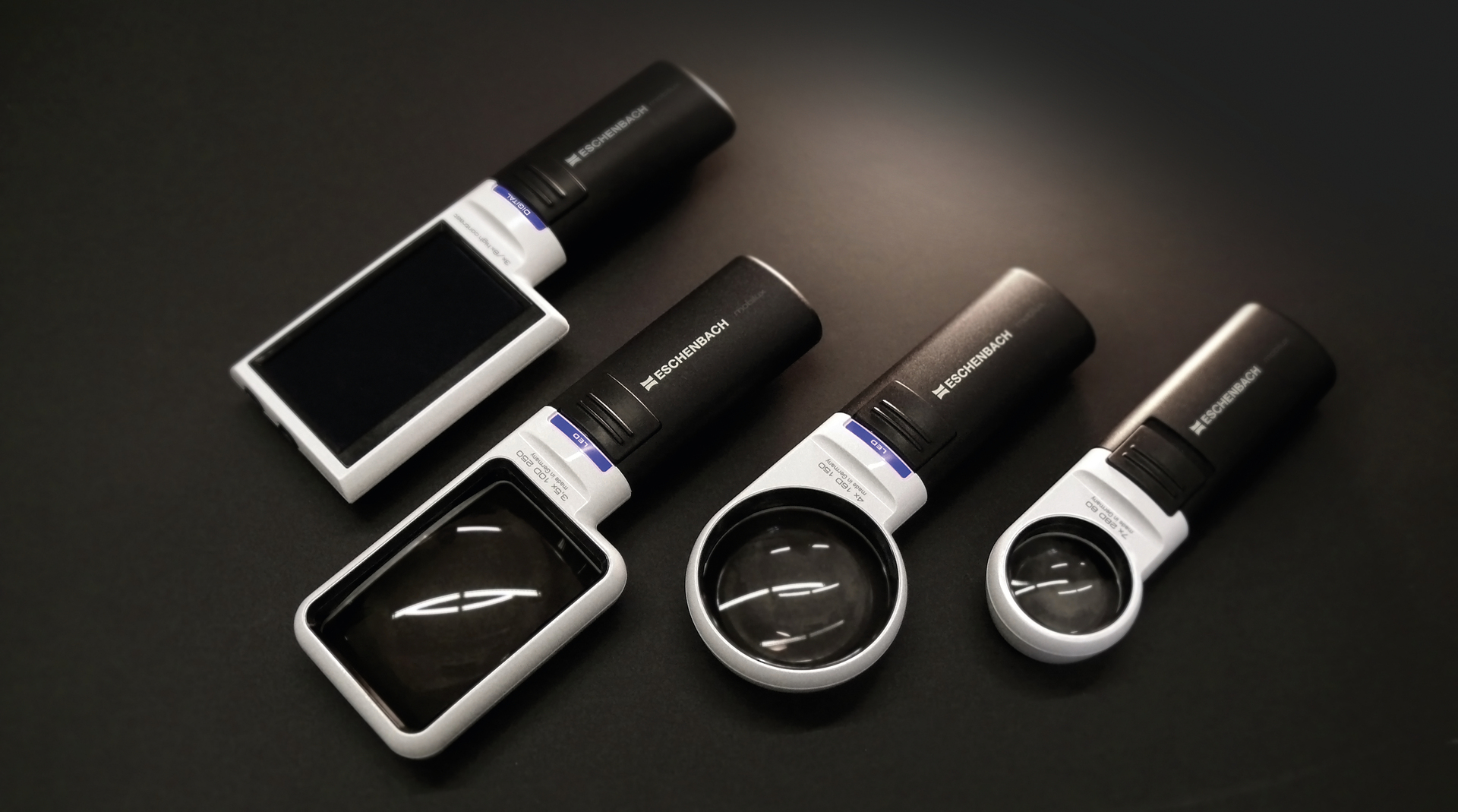 This lighted magnifier series includes a variety of magnification levels as well as a digital version with OLED display, photographic freeze mode, two magnification levels and contrast settings. Compared to its predecessor model, ergonomic aspects have been improved and the Mobilux now features a more elegant look. A flattening at the head end reduces volume, achieving reduced weight and imbuing the magnifier with a sense of visual lightness. The on/off switch is situated along the black handle and is thus easy to enable.