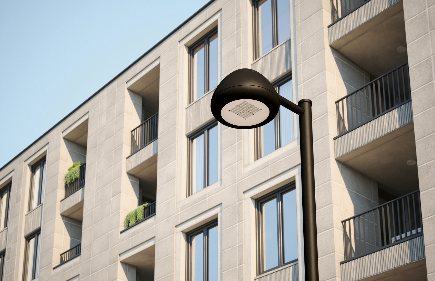 Mochi is a street lamp for residential and traffic roads, riverside promenades and cycle paths as well as urban parks and public spaces, whose dome is available in side or pendant mount. Functional details such as the integrated push-button lock ensure tool-free access to the light source, which can optionally be equipped with boards of 36 or 54 LEDs and provides even illumination in 14 different light distribution types. The optical lenses are fully sealed and IP66 rated for harsh weather conditions, delivering durable, consistent, superior illumination.