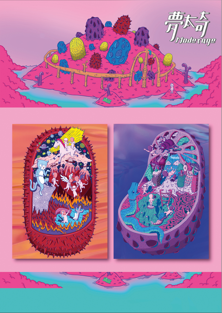 This work depicts the psychological phenomenon of dreams as cellular structures. Dreams are divided into four categories: joy, anger, sadness and fear. The drawing style is reminiscent of comics, featuring black outlines, bright colours and humorous ideas. Apart from showing human and animal figures, the images are bustling with everyday objects and other fragments of reality. Thus, the illustrations demonstrate the wide range of connotations associated with the subject, inviting viewers to go on a journey into the unconscious.