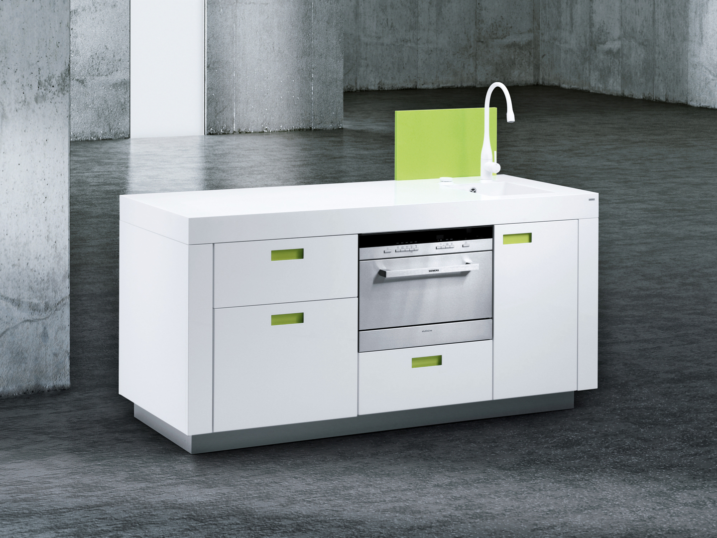 This modular system for compact office kitchens enables individual adjustment to various office situations. The modula-kiosk combines waste management, stock holding, cooling and cleaning in the smallest space. The system can be configured exactly and, thanks to a selection of surfaces for the fronts, it can be suited to almost any colour concept. The materials used are easy to clean, sturdy and long-living.