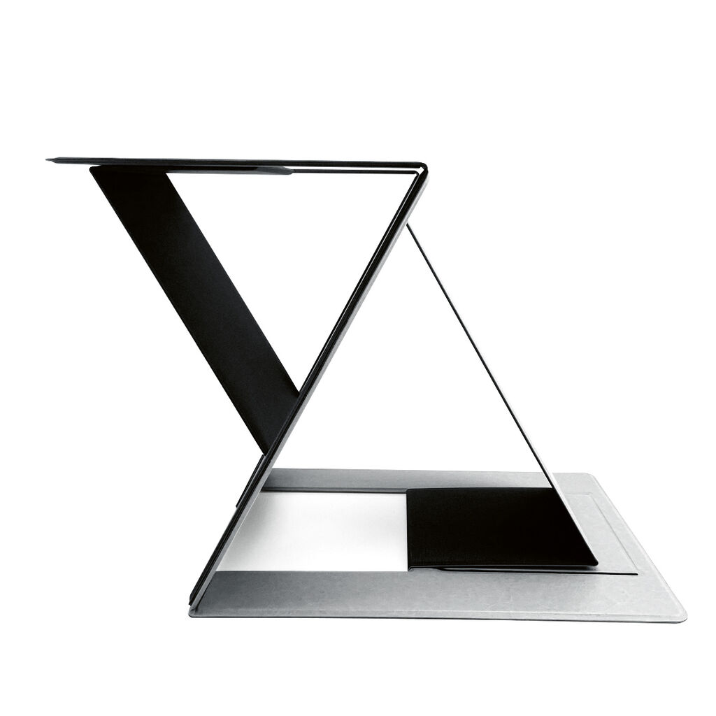 MOFT Z is an adjustable laptop stand for use on a desk. It was designed according to the origami principle and may be folded differently depending on the application scenario. It offers four frequently used angles for the sitting mode and a height of 25 cm for the standing mode. During work, the user can stand up and quickly adjust the stand accordingly, without being restricted by the height of the table. The stand can be folded in order to be neatly stowed away or transported.