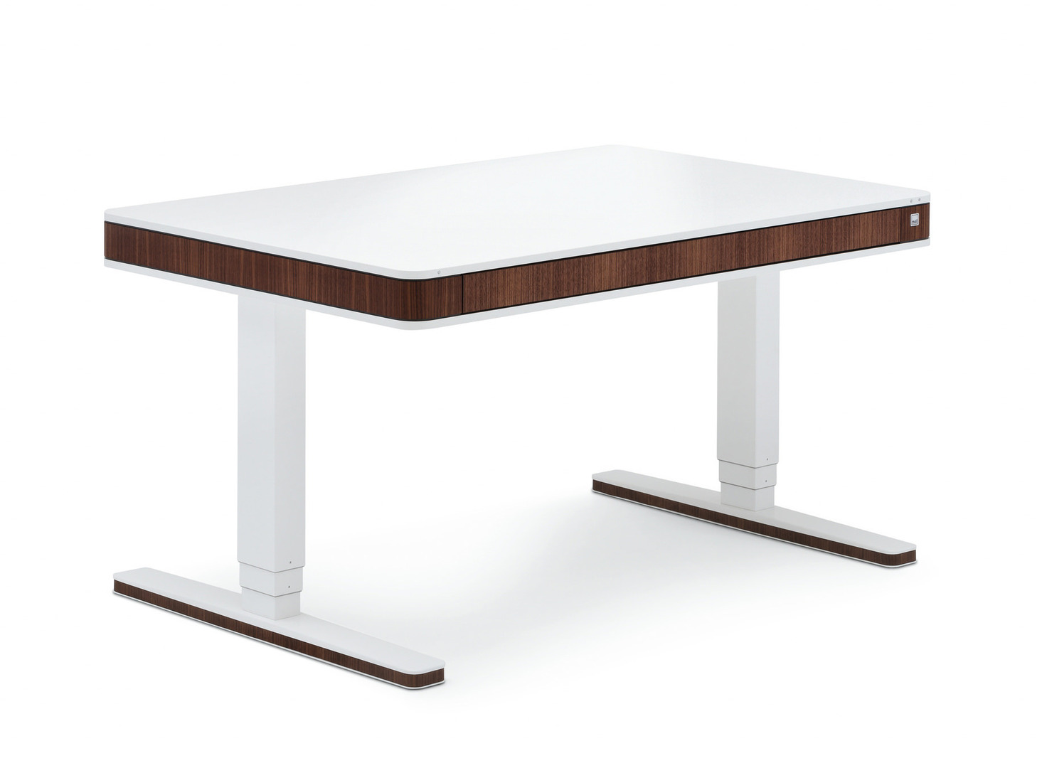 The moll T7 desk can be integrated into any room. It features a safe electrically motorised height adjustment that is lockable and requires two-handed operation, thus covering the entire range of users and applications – from the seated child to standing adults. The high-capacity drawer with push-toopen function offers enough room for diverse utensils and documents. An optional cable duct with power man-agement provides storage for power adapters and keeps the workplace neat and clean. The inlay of the table top is colour-coded and strongly contributes to its distinctive look. It is available in six different colours, including two solid wood versions.