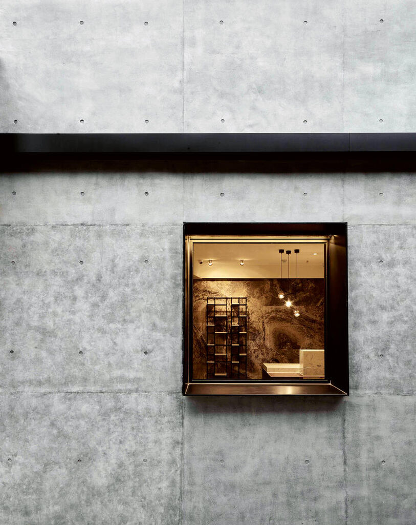 In order to make the Monka Hotel blend into its surroundings, its design is deliberately ambiguous, on the border between traditional architecture and more modern styles. The facade features grey concrete, the large windows of different sizes have black frames to give the building a calm exterior. The lobby is fitted with unadulterated materials. A wall clad with original ancient cave stones goes with the concrete floor and the wooden partition. The stairs have an open construction which allows them to reflect the light from outside.