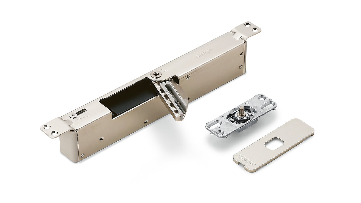 The MonoFlat LIN-X1000 hinge makes it possible to open doors in a way that saves space by first moving them slightly forward and then to the side. Once the door is open, it offers unobstructed access to the interior. Two features make the movement elegant and controllable. The soft-closing function ensures that the door moves smoothly and slowly, and the free-stop function allows it to be stopped in any position. The door opening system is suitable for large, heavy doors up to 90 kg, for example on walk-in cupboards, hidden entrances, storage rooms in shops or room dividers.
