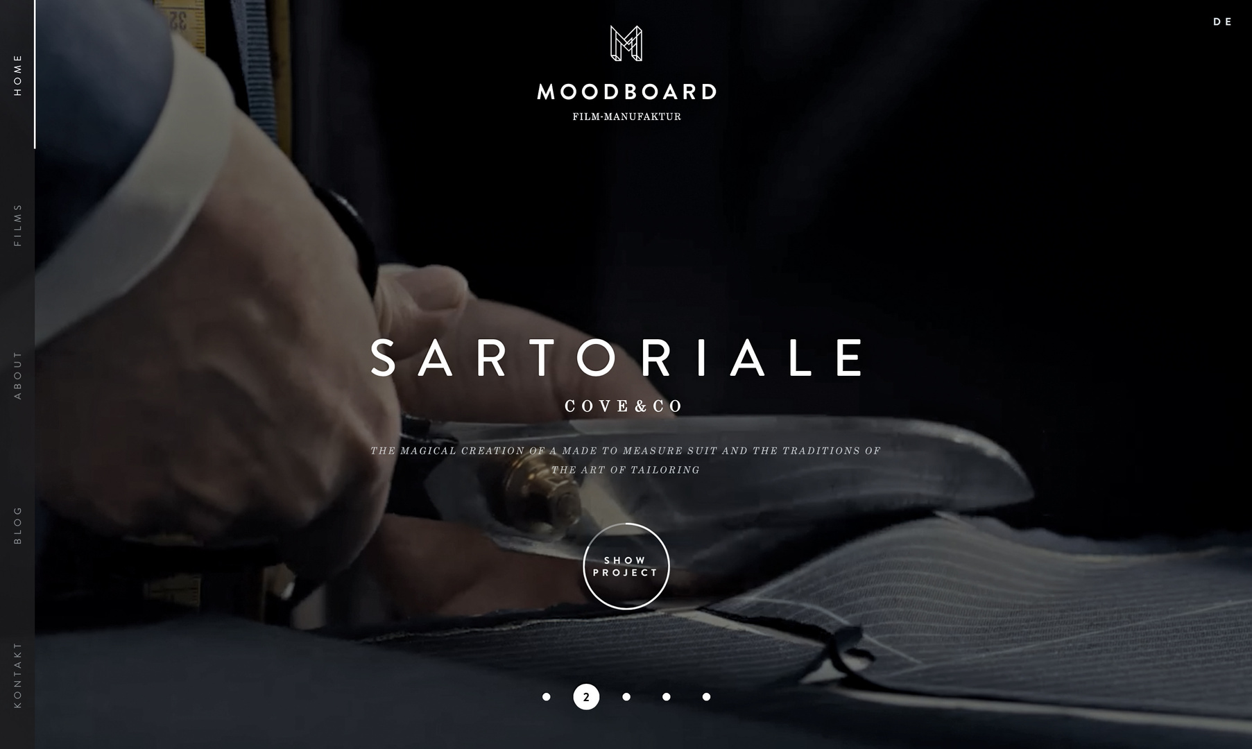 For the studio of young up-and-coming movie director Konstantinos Sampanis and his label Moodboard, a high-end video website in full responsive design has been created. The continuous use of moving pictures within a minimalistic design layout focuses on the brilliance and high quality of the label’s cinematic work. On the start page, the top four projects rotate in a fullscreen video showreel. Each project is presented in an extensive case study implemented in the WordPress CMS. Multiple slides deal with different key aspects of each project.