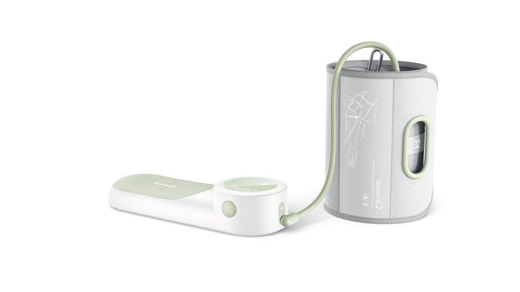 moonO provides an entirely new user experience in measuring blood pressure. The design is characterised by the soft padding on which the hand is placed, automatically ensuring an optimal, stable arm position. A size scale on the cuff makes it easy for the user to find their individual size setting again for each measurement. Natural forest green as the accent colour aims to relax the user. The readings are shown on the display, the shape of which is inspired by the moon, and stored in an app.