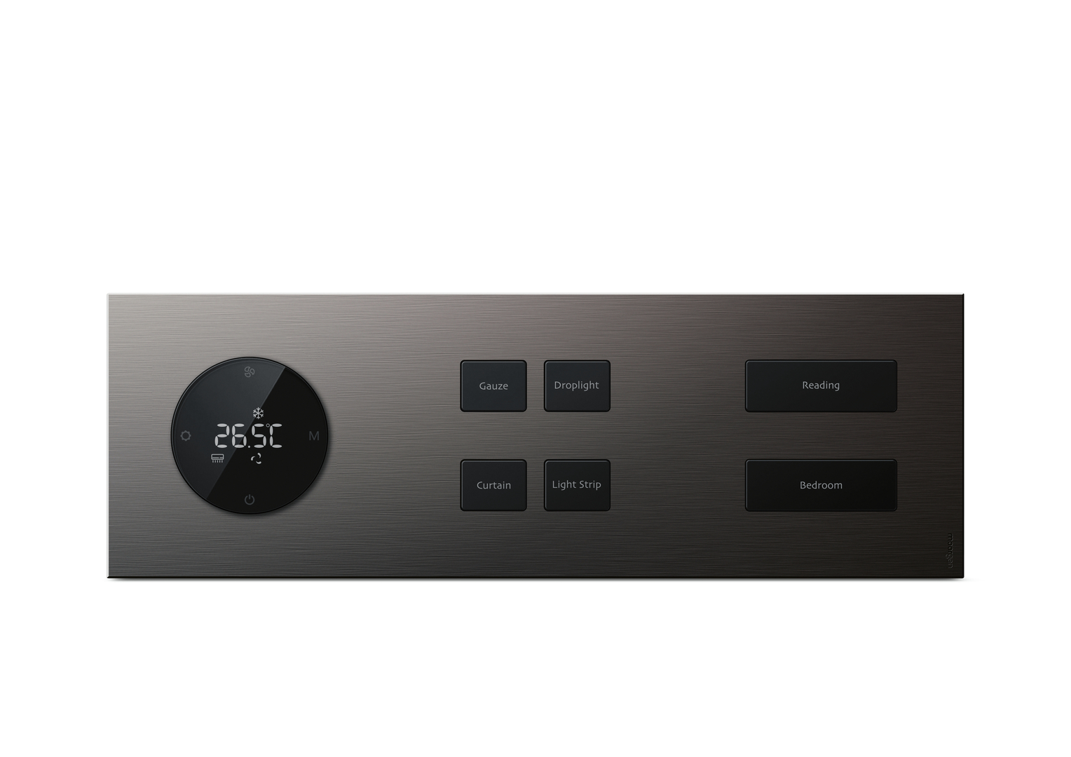 With just a single control panel for lights, curtains, air conditioning system and televisions, the distinctive appearance of the Moorgen Smart Switch Panel gives the room a peaceful air. When sleep mode is activated, the lighting is slowly dimmed, the curtains close quietly, and the air conditioning system is set to a pleasant temperature. An installed light sensor automatically adjusts the intensity of text and light in order to facilitate operation in low light conditions. A wide variety of material and colour combinations makes this suitable for individual interior decor styles and requirements.