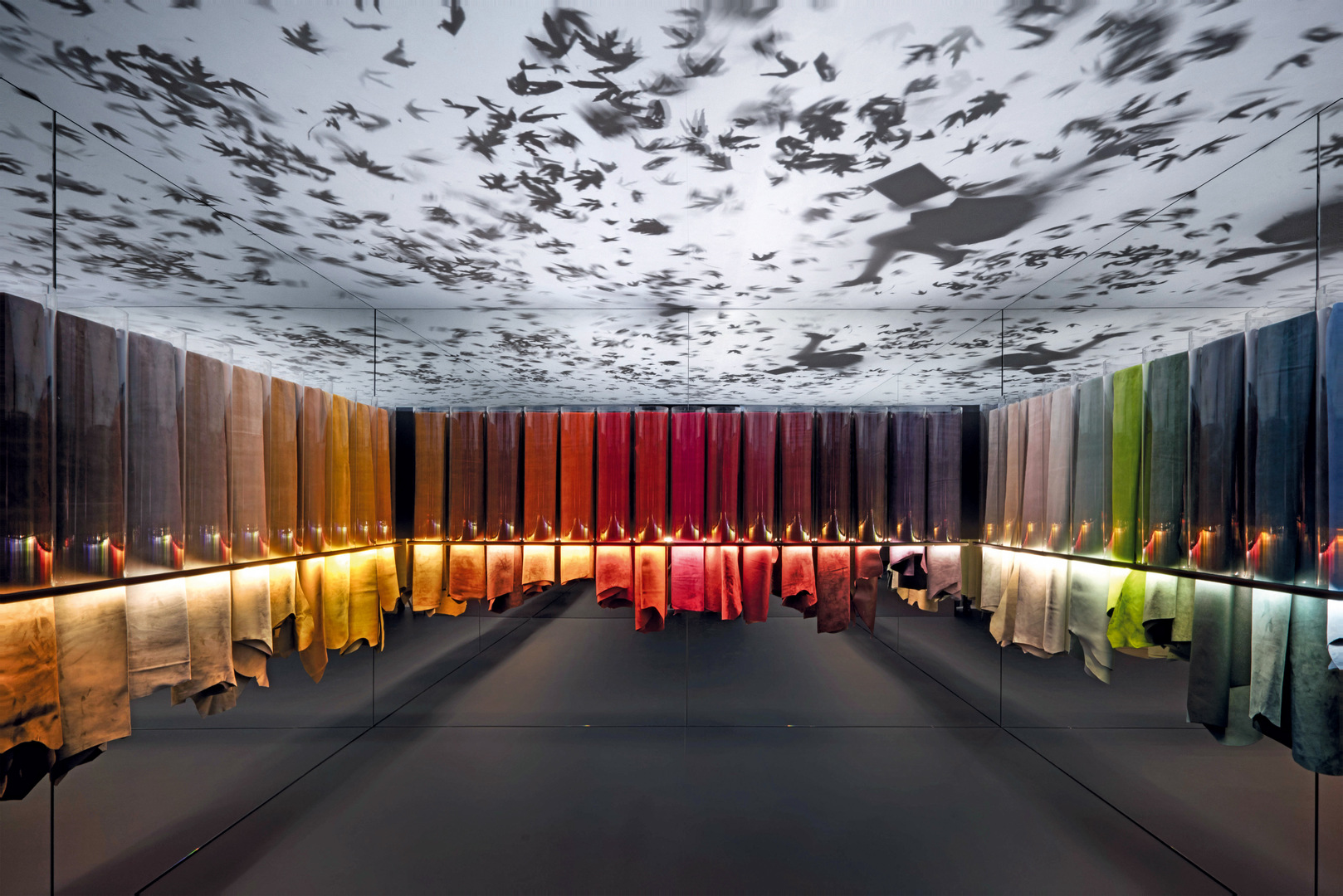 The exhibit “Walking Pleasure” is a tribute to the 70-year anniversary of the Italian shoe brand Moreschi. It offers a multisensory experience that is aimed at inviting guests to reflect on the concepts of walking and motion from different angles. A central black cube is at the heart of the exhibit. Inside, visitors find themselves below ground level to observe the dynamic succession of shoe prints walking in the rain, on the asphalt and on the ground. While enveloped by sound, visitors are surrounded by a rich variety of Moreschi leather materials, offering them a tactile and olfactive experience to complete the knowledge.