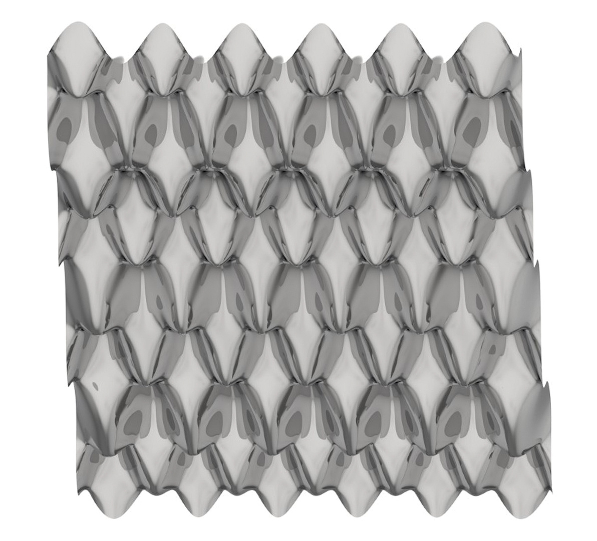 To construct this material, the desired structural outcome was built using a 3D modelling software that allows the effects of the surface to be realised before weaving. The model was then rendered to yield an image compatible with the Jacquard weaving software. The surfaces created represent not only the structural capabilities of Jacquard weaving, but also the capabilities of 3D modelling as a method of creating woven material. By taking pre-existing resources and considering alternative applications for their processing, new ideas for traditional textile and material creation can be explored.