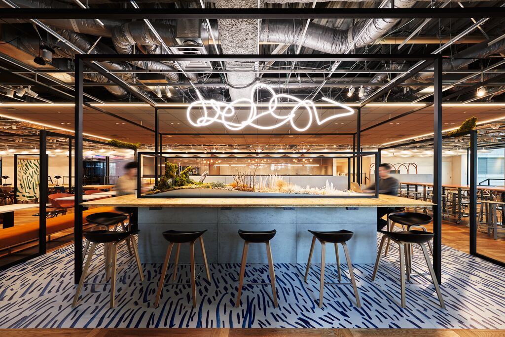 “mot.” stands for Mitsui Office for Tomorrow, which is a facility for tenant workers providing a multipurpose space for activities such as working, dining, meeting, and leisure. Situated in Otemachi One, a large office complex in Tokyo, Japan, the project pursues the goal “From Work to Work Wellness”, advancing a new approach to an office complex based on the patchwork concept. Frames serve as threads linking diverse activities and places. Also, emotional elements such as art, recordings and lights are incorporated into these “frames”, blending activities, places, and human sensibilities into patchwork spaces.