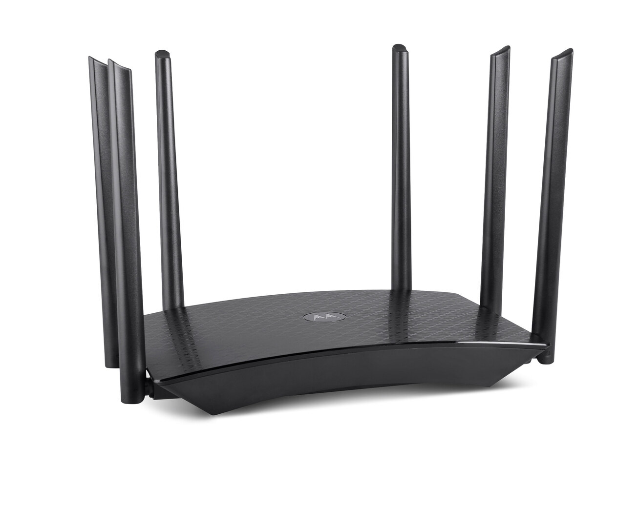 With its curved shape, the AC1700 router symbolises the connection to the network world. From a functional viewpoint, the arch shape also enhances heat dissipation. The top of the housing is characterised by a laser-engraved structure with highlighted grid patterns giving the device an elegant appearance. The router is equipped with dual-band Wi-Fi and six polymer antennas allowing for up to six different data streams.