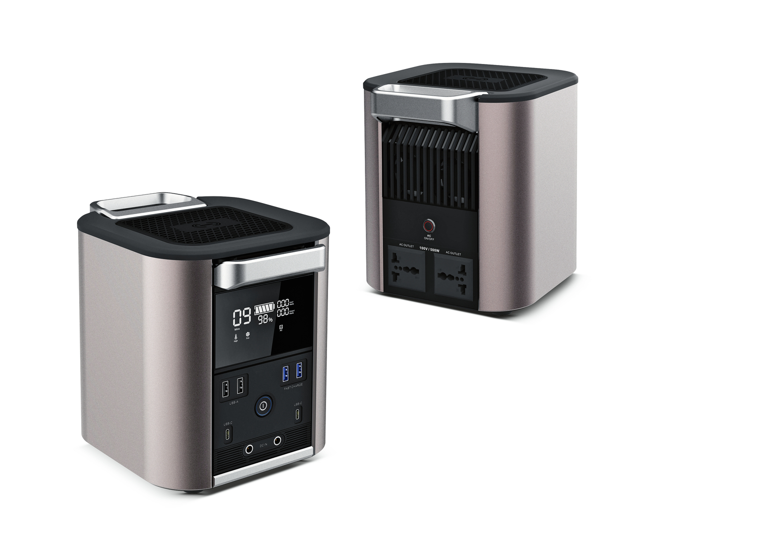 The MOUNTAIN 400 portable power station was designed with the outdoor traveller in mind. The small, lightweight product with built-in lithium-ion battery pack has multiple DC as well as two AC output interfaces that support simultaneous charging of various digital devices. The waterproof product housing is made of fire-retardant polycarbonate and aluminium. The handle of this compact cube is extendable, which reduces storage space and transport volume.