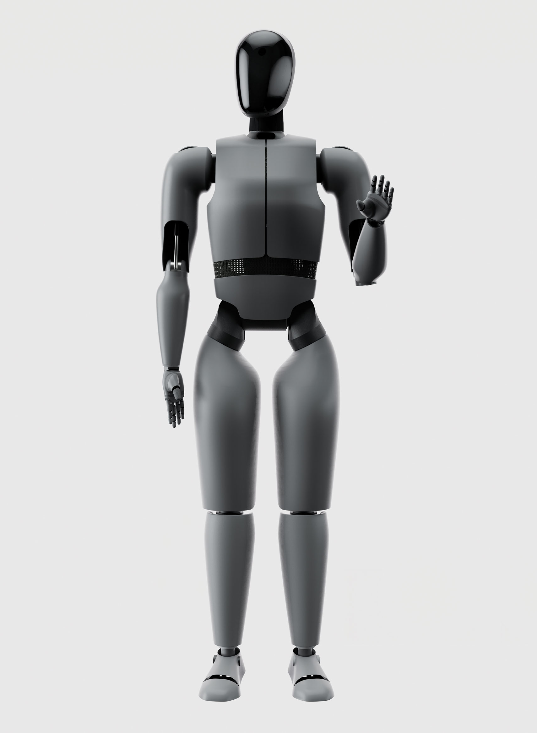 The Movus humanoid is designed to mimic human flexibility and functionality. It features a flexible chest that expands for complex movements, articulated joints for smooth and extensive motion, and legs that house bulkier components for better balance and stability. These design elements provide the humanoid with a wider range of mobility, allowing it to replicate complex human gestures more naturally.