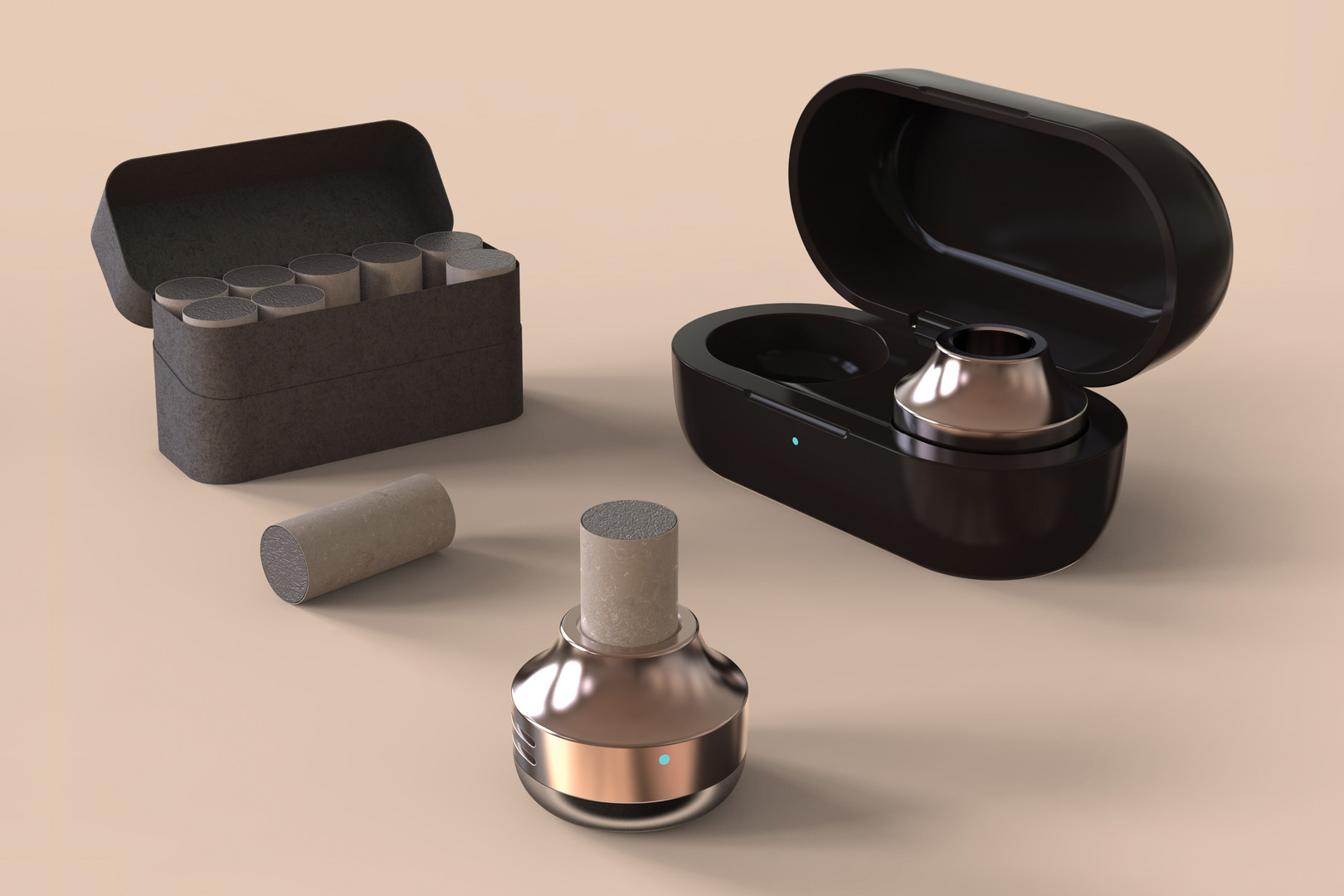 Moxa is traditionally burnt directly in moxibustion therapy, but Moxa Machina treats by heating the moxa sticks without producing smoke. By using a heating system and allowing control via the app, it provides heating control, which is an important aspect of moxibustion. The product can be recharged in a small case and used at home or on the go. The product improves the condition of the entire mind and body and leads to better well-being.