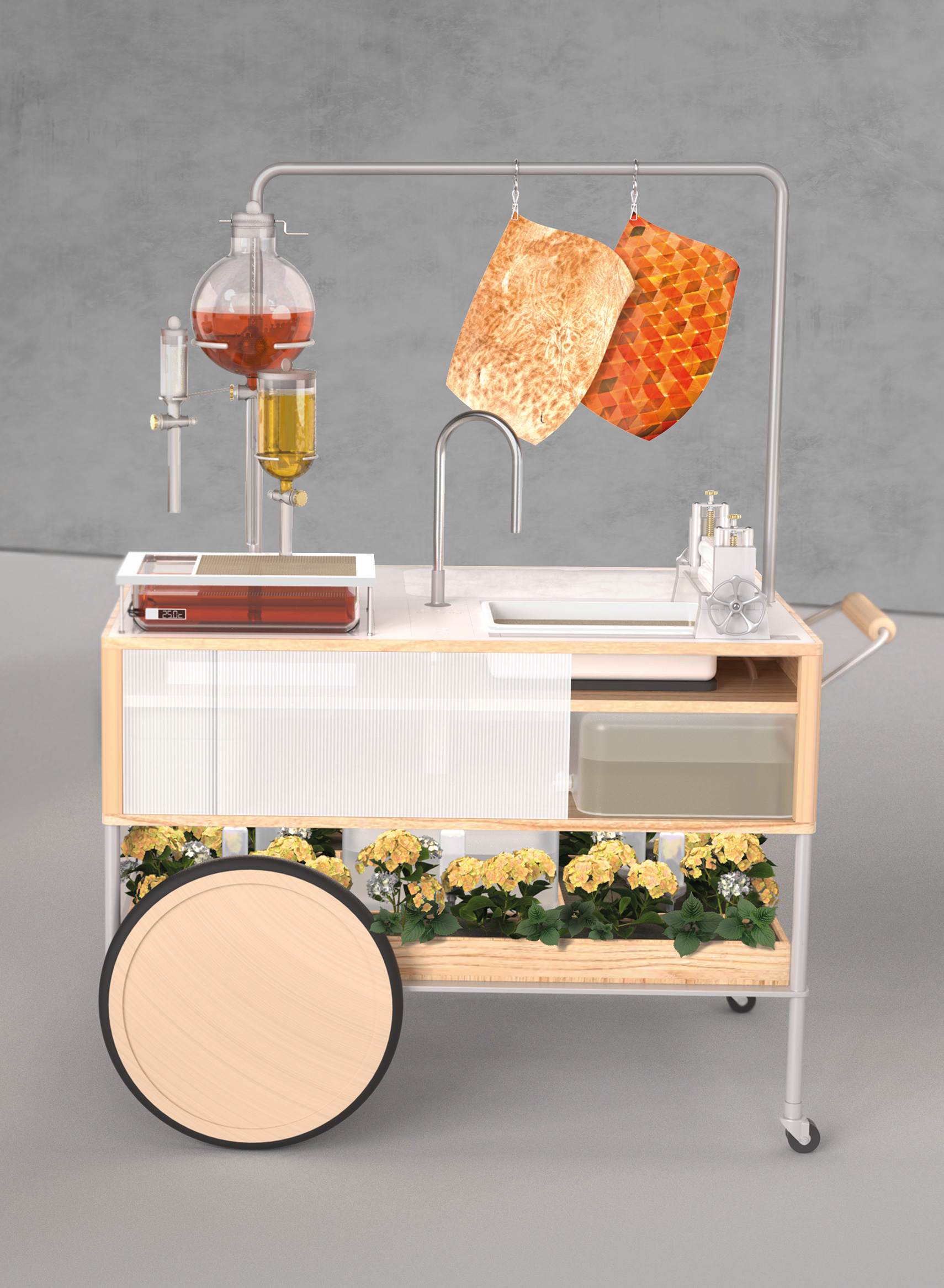 Mr. Kombucha's Lab, a resource-sharing platform that promotes SCOBY as a biomaterial, aims to guide people in using SCOBY to create DIY products and reduce reliance on leather and plastic. SCOBY is a by-product of kombucha production and a high-performance fibre material. Now the project has iterated to its second generation, which is committed to promoting SCOBY materials through small-scale workshops. The project simplifies the intricate processing of SCOBY into a DIY process and achieves a closed lifecycle from production to recycling. As a leather alternative, SCOBY material should be practically popularised and applied, contributing to the advancement of sustainable design with a focus on materials. Numerous designers and artists have taken notice of SCOBY, actively exploring its applications. However, the processes and tools employed often prove impractical for daily life. This project streamlines the entire lifecycle processing of SCOBY, from cultivation to degradation, enhancing its accessibility and usability. The project is divided into four parts: experimenting with diverse processing techniques to obtain samples; cultivating SCOBY with identified optimal processes and integrating iterated processes into a mobile incubator; creating DIY items such as bags using cultivated SCOBY; and sharing the processes in workshops. Red Dot Award: Design Concept | Red Dot: Next Gen Award | Concept | Material and Surfaces