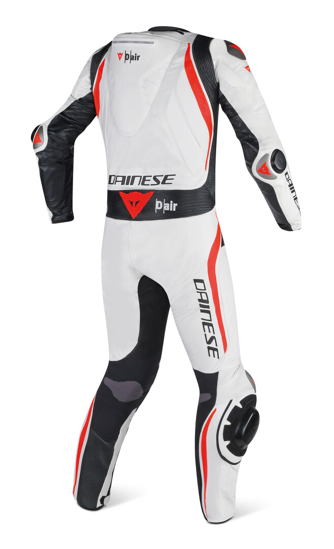 The motorcycle racing suit Mugello R D-Air includes numerous technical innovations which make it a modern safety system for professional motor cycling. One of these is the patented, intelligent emergency lighting system: an LED strip that automatically activates when the driver falls thus reducing the risk of being hit by another vehicle. The remodelled architecture of the suit integrates a patented adaptive knee design, a triaxial elastic textile and seamlessly manufactured inserts for high comfort.